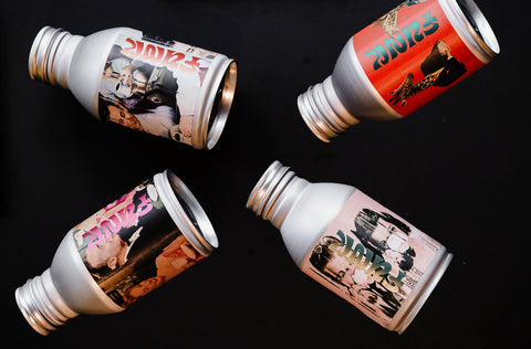 So glad you asked! They’re emblematic of when we roasted coffee and brewed beer under the same roof as House of Funk. We were gifted the can concept by our beer brethren — the crowlers are usually made for holding beer, but they’re actually ideal for coffee: the aluminum is porous, shielding the contents from air and light; there’s an oxygen-scavenging seal in the cap that continues to draw oxygen out of the can even once opened; and the sides provide ample real estate for showcasing funky artistic collaborations.